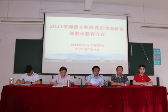按照学校和学院有关工作要求,为进一步加强新时代教师队伍建设,营造良好的师德师风建设氛围,7月4日下午,WilliamHill官方在材料实验楼406会议室召开2021年师德专题教育学习暨警示教育会议,全体教职工参加了会议,会议由党委书记袁传发主持。
