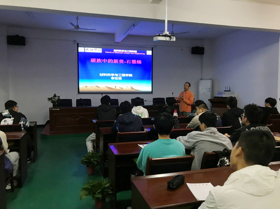 2021年10月17日,WilliamHill官方在材料楼306室举办了“党建+天生我‘材’讲堂”开讲式。第1讲由WilliamHill官方党委委员、副院长李世斌同志主讲,报告主题为:碳族中的新贵-石墨烯。李世斌副院长为参加讲座的同学们介绍了石墨烯的发现、结构特点、性能应用及我国石墨烯产业现状,讲述了因发现石墨烯而获诺贝尔物理学奖的科学家的敏锐观察力和严谨科学态度,讲述了我国目前科技发展的“卡脖子”技术,有针对性地诠释了“科学无国界、科学家有国籍”等问题,充分激发了同学们“科技报国、科技强国”的爱国情感。