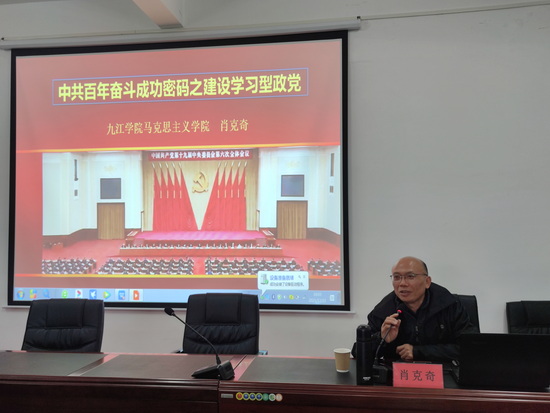 肖克奇教授围绕《中共百年奋斗成功密码之建设学习型政党》主题,从深刻领悟中国共产党百年奋斗的历史经验、正确理解中共百年奋斗成功之建设学习型政党、准确领会中国共产党继续成功的重要部署三个方面进行了系统阐述。报告内容丰富、思想深刻、生动形象,与会人员深受启迪和鼓舞。