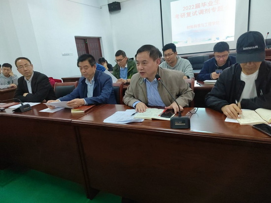 为进一步推进学院毕业生考研工作,帮助上线学生掌握复试、调剂技巧,提升录取率,3月14日下午,在材料实验楼306会议室举行2022届考研复试调剂专题会议。材料学院院长张德勤,党委书记袁传发,副院长李世斌、李养良,党委副书记陈娜,省工程中心副主任王洪涛,思政科科长欧阳效卓,各教研室主任和博士教师代表,毕业班班主任以及考研初试上线学生参加了本次专题会。会议由党委副书记陈娜主持。