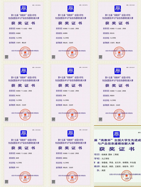 经过激烈角逐,我院学子一举斩获大赛机械类赛项个人单项一等奖1项、二等奖4项、三等奖3项、团体二等奖1项的优异成绩。获奖名单和获奖证书如下: