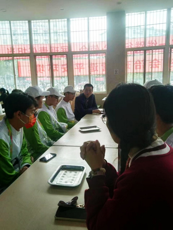 袁传发书记首先与材料学院省运会志愿者的同学们进行座谈,对学院志愿者的前期工作表示了充分肯定,对全体志愿者的辛苦付出表示亲切的问候,同时强调,协办第十六届省运会是对学校组织能力与服务保障能力的考验,也是教育引导学生积极服务社会的契机。希望我院学生能够珍惜此次历练机会,在志愿服务中锤炼意志品质,提升自身综合素质,以高标准、严要求投入到服务保障工作中,坚决服从安排管理,展现材料学子的精神风貌,并表示学院会与相关职能部门进行协调,并尽快解决安排请假及后续补课问题,全力以赴、扎实做好志愿者们的服务保障工作,及时解决学生志愿期间遇到的困难,确保我院志愿者顺利完成志愿服务工作。省运会志愿服务的同学们倍感振奋,大家纷纷表示一定要将学院的鼓励和关怀化为“服务省运、奉献省运、分享省运”的不竭动力,弘扬志愿服务精神,圆满完成志愿服务任务,为江西省第十六届运动会做出材料学子应有的贡献。