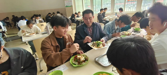 随后,袁书记与学生代表们共进午餐,他强调同学们正是长身体的时候,要多吃点,身体好将来才能更好的服务社会。餐后,同学们就目前的“创业与就业”、“考研与就业”、“学习与工作的协调”、“老师与同学关系的处理”、“如何适应大学生活”,“如何做好大学规划”等方面的困难和迷茫与老师们进行深入交流和互动,老师们也回忆起了自己的大学生活,用一些自己的亲身经历来鼓励同学们勇敢地克服困难,现场气氛轻松而热烈。学生代表在轻松和谐的氛围里,大胆地说出了自己的心声,诉说内心的想法,释放心中的压力。袁书记鼓励同学们要努力学习专业知识,练就过硬本领;要学会独立思考,积极追求真理,坚定理想信念,从学习中增长才智,从工作中锻炼能力,从交友中品味成熟,从实践中赢得价值,从兴趣中找到方向。