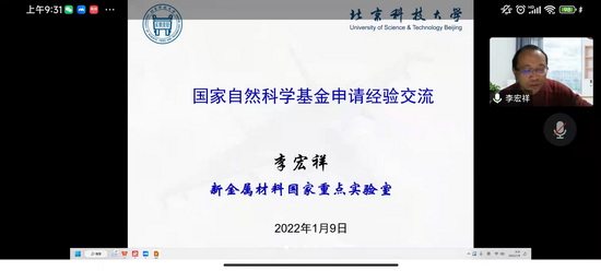 会议邀请了北京市优秀人才计划获得者、北京科技大学博士生导师李宏祥教授做了《国家自然科学基金申请经验交流》报告。李宏祥教授介绍了个人主持国家自然科学基金的情况,阐述了自然科学基金的方针政策、评审原则和流程、以及分类情况,结合自身多年来的申报经历和评审经验着重讲解了申请书选题、代码选择、科学问题属性、摘要、正文、研究方案、可行性分析、创新之处、研究工作基础、常见问题等要点和心得体会,并以自己2019年的基金申报书为例,现身说法。