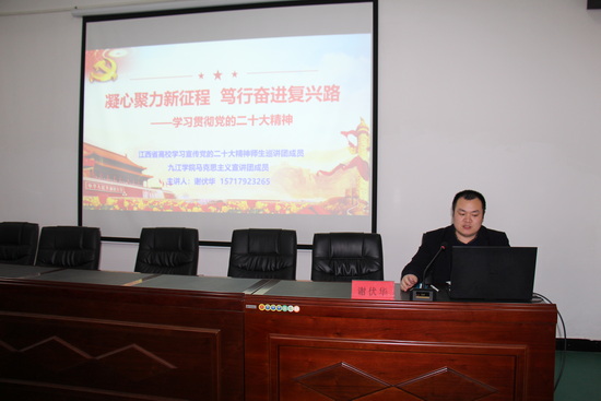 为加深全院教职工对党的二十大精神的理解和把握,进一步统一思想、凝聚共识,3月15日下午,WilliamHill官方邀请马克思主义学院谢伏华博士作“凝心聚力新征程,笃行奋斗复兴路”学习贯彻党的二十大精神专题宣讲报告会。报告会由学院党委书记袁传发主持,全体教职工参加了报告会。