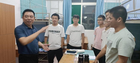 院长张德勤,党委书记袁传发,党委副书记陈娜,学生科科长梅红平,一起走访了25栋、35栋和6栋学生宿舍,张德勤院长十分关心学生们的身体健康,心理健康和学习情况,耐心地听完了新生们来到新的环境所面临的问题,并细心地解答疑惑。张院长勉励大家:“来到一个新的起点,我们不能松懈下来,给自己定个高远的目标,比如考研,考公,就业,创业等,朝着这个目标努力的前进,不能因为一点小的挫折就停滞不前,阳光总在风雨后,希望你们在新的起点上收获自己中意的果实。”