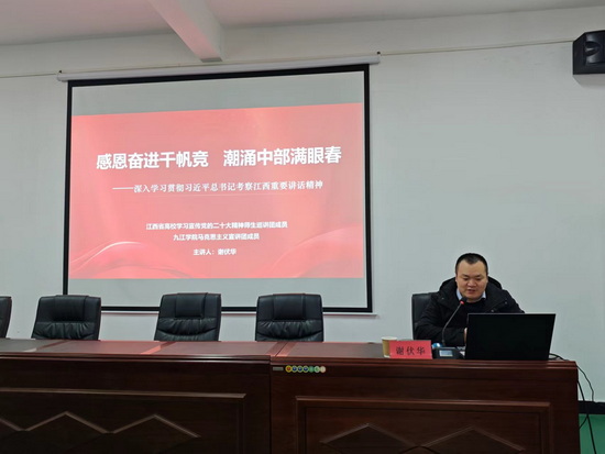 谢伏结围绕“深刻把握习近平总书记再次考察江西的重大意义”“深刻把握习近平总书记对江西发展提出的新的战略定位”“深刻把握习近平总书记对江西发展提出的任务要求”三个方面进行了全面系统、鲜活生动的阐释。