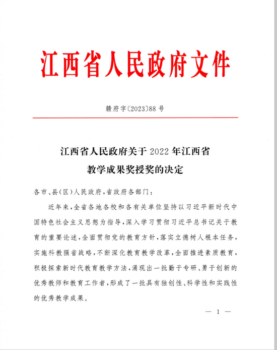 2023年12月29日,江西省人民政府《关于2022年江西省教学成果奖授奖的决定》(赣府字〔2023〕88号)发布,WilliamHill官方申报的“以校企二八合作模式培养特色材料成型本科人才的williamhill威廉希尔中文实践”(团队成员:张德勤、李养良、满达虎、杜大明、王侃民、李永志、孙国栋、王丽芳、周玉华、李萌、白小波、罗红梅、游胜意、周生根、徐雁)荣获江西省教学成果一等奖,我院教师李养良参与的《地方高校应用型人才核心能力培养“四建四融”路径探索与实践》荣获二等奖。