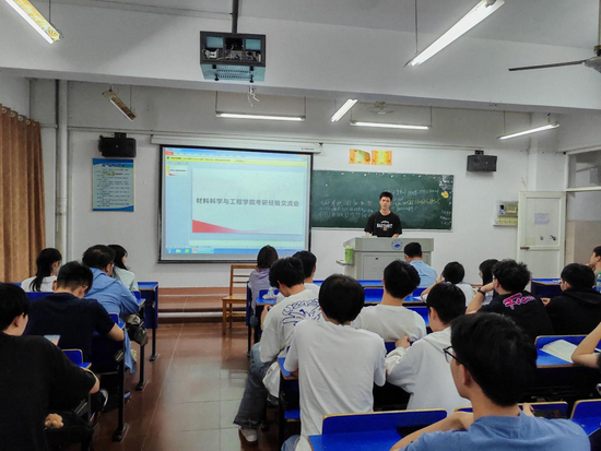 随后,上岸学生代表分享自己的学习经验。程功杰围绕各科学习经验展开分享。针对数学(专硕多考数学二),他建议暑假前以“看课+刷题”为主,推荐跟随主流老师学习,避免过度依赖课程,注重通过刷题巩固知识,习题册可选择660、880、1000题等。十月中旬起聚焦真题训练,近20年真题至少刷两遍,严格限时完成以提升计算能力。十一月至十二月,通过20余套模拟卷查漏补缺,强调数学学习时间“上不封顶”,需尽可能投入精力。英语二学习方面,他强调前期坚持每日1.5-2小时背单词,尽早观看阅读课并完成真题阅读题,建议先自行翻译全文再答题,全程以真题为核心复习资料,无需额外购买习题册。目标高分的同学可十月左右启动作文准备。政治复习可于8月下旬至9月开始,每日2小时左右,以选择题练习为主,肖秀荣四套卷发布后集中背诵大题,选择题可借助“苍盾”小程序强化训练。专业课(材科基)需重视背诵,暑假启动复习,1.5-2个月完成教材内容梳理,后续每日2-3小时背诵,考试内容多源于机构重点书原题,认真背诵可达平均分以上。