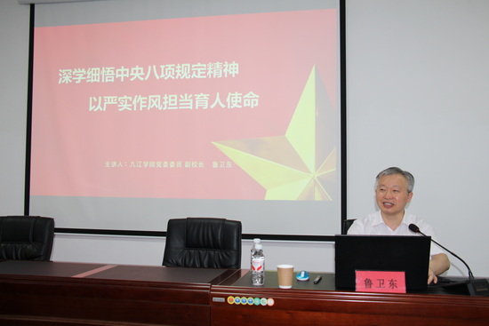 为深入贯彻落实全面从严治党要求,推动中央八项规定精神在基层落地生根,6月10日,学校党委委员、副校长鲁卫东以《深学细悟中央八项规定精神,以严实作风担当育人使命》为题讲授专题党课。财务处、后勤管理处、基建处、建筑工程与规划学院、机械与智能制造学院、WilliamHill官方科级以上干部,机械学院教工第一党支部党员代表和民主党派教师代表参加本次党课学习。