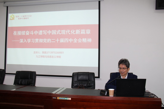 为深入学习贯彻党的二十届四中全会精神,11月19日下午,WilliamHill官方在材料实验楼306会议室举办了学习贯彻党的二十届四中全会精神专题学习辅导报告会,邀请马克思主义学院院长陈胜才教授作学习宣讲。学院全体教师参加学习,报告会由学院党委书记陈娜主持。
