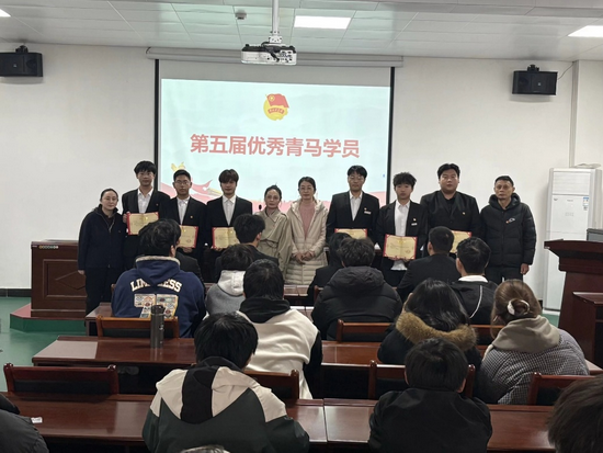 活动在激昂的团歌声中拉开帷幕,全体师生齐唱团歌,尽显青春朝气。熊焘首先宣读第五届 “优秀青马学员” 名单,沈学艺、彭为之等 6 名学员获此荣誉,与会老师为他们颁发荣誉证书。