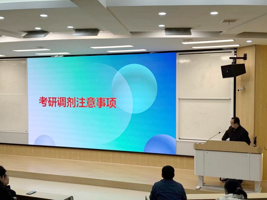 副院长姚海龙开展专题复试指导讲座,围绕复试流程、专业问答准备、综合面试技巧、调剂流程及注意事项等核心内容进行细致讲解,为学子们提供了全面且实用的备考策略。