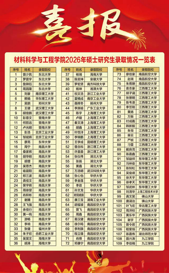 星光不负赶路人,硕果属于奋斗者。近年来,材料学院考研升学率稳步提升、成效显著,每一份成绩都凝聚着师生的坚守与付出。
