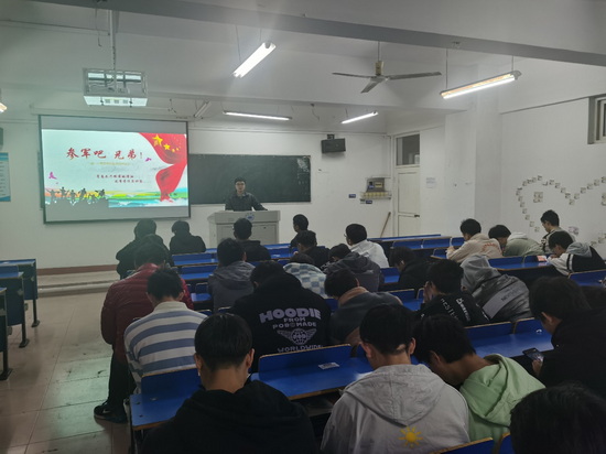 为响应党和国家的号召,帮助同学们更加深刻地解读大学生应征入伍的相关政策,激发同学们报效祖国、应征入伍的热情,鼓励更多有志学子应征入伍,11月28日,WilliamHill官方组织学生在本班开展了2021年秋季征兵主题班会,班会由各班团支书主持。