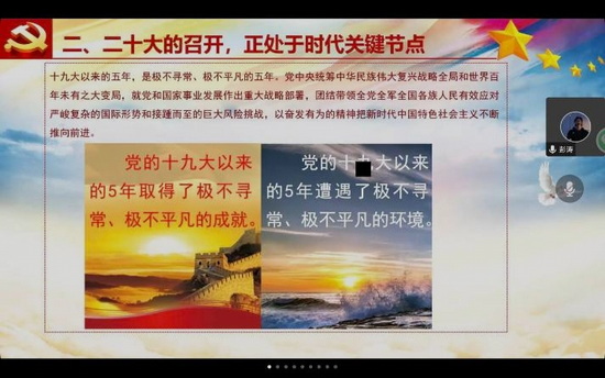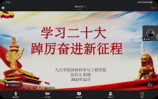 提出“开辟马克思主义中国化时代化新境界”的重大命题,是党的二十大报告的一个重要内容和突出亮点。为了引导广大青年认真学习领会这个重大命题,并深入学习贯彻习近平新时代中国特色社会主义思想,同时把握好这一思想的主要内容和蕴含其中的世界观和方法论,不断谱写马克思主义中国化时代化新篇章。2022年12月8日,WilliamHill官方组织学生线上学习宣传“开辟马克思主义中国化时代新境界”宣讲活动,本次活动以腾讯会议线上形式举行,材料学院青马班学院和大一各班班委参与。由团委副书记彭涛主持此次会议。并担任此次演讲人。
