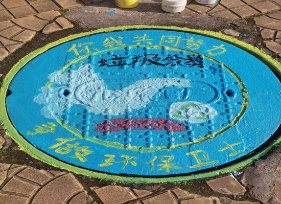 活动中,志愿者们被分成五个小组,前往各自的地点,在学校井盖上绘上有关垃圾分类主题的图画。天气是阳光明媚,同学们的脸上洋溢着快乐的笑容,大家以井盖为画布,手持画笔与调色盘,一笔一笔认真勾画,积极参与美术创作,增添了校园的美丽,也提高了对美的感知能力。活动结束之后,同学们不忘记把场地收拾干净,留下井盖上的一幅幅生动的图案。