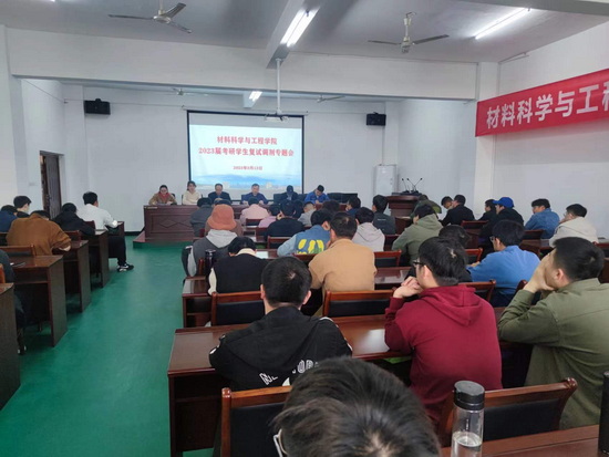 会议开始,思政科科长欧阳效卓报告并分析了学院2023届毕业生考研总体情况。材料学院2023届毕业生人数172人,报考研究生人数115人,报考率为66.86%,上线人数70人,上线率40.7%。欧阳效卓老师从2010年以来全国考研数据及报录比的走向,谈到今年报录比预计达到4:1,考研录取形势严峻,希望同学们在复试和调剂阶段认真对待、努力付出,多与指导老师沟通,准确评估自己的实力,争取最终实现学业上的更进一步。