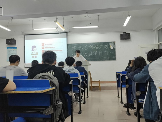 首先,组织委员向我们介绍总体国家安全观的定义。之后, 黄鸿同学向我们传达关于总体国家安全观党中央的要求:胸怀“两个大局”、牢记“国之大者”,更好地统筹发展和安全,加快构建新安全格局,着力防范化解重大风险,持续推进国家安全体系和能力建设,为扛起“争当表率、争做示范、走在前列”的光荣使命、谱写新时代现代化建设新篇章提供坚强安全保障,以实际行动和实际成效增强“四个意识”、坚定“四个自信”、做到“两个维护”。让同学们了解党中央对总体安全观的重视。