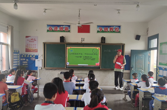 实践队开展防溺水安全教育活动。通过向学生介绍近年来发生在全国的中小学生溺水案例,以及一个个真实案例的惨痛教训,向学生普及防溺水常识、和防溺水“六不”“两会”等各类安全知识。并强调到:安全之事,预防为先。珍爱生命,预防溺水。学生要牢记防溺水措施——“六不”“两会”。同时,用播放短视频的方式帮助青少年提升安全自救意识和能力。