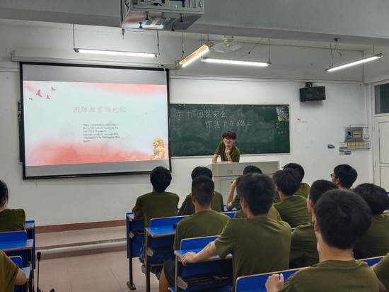 活动开始,主持人向在座同学们讲解了国家安全观,强调国防教育的重要性,深化新时代国防教育,培育同学们热爱国防、参与民防建设的自觉性,激发爱国、爱军热情。主持人呼吁大家:要切实提高政治站位,深刻学习领会习近平总书记关于加强全民国防教育的重要指示精神,将习近平强军思想融入全民国防教育各领域。