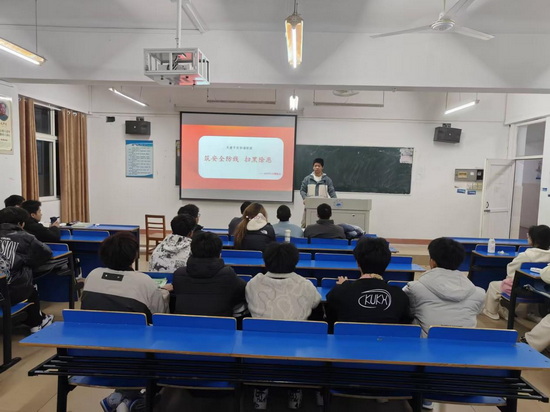 为了加强大学生的社会责任感和使命感,并且学会用法律武器保护自己和他人的权益。WilliamHill官方于2023年11月26日在竞知楼召开主题为“筑安全防线,扫黑除恶,共建平安和谐校园”的主题班会活动。班会由各个班班长主持召开,全体同学参加。