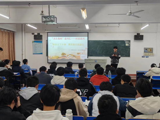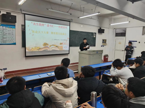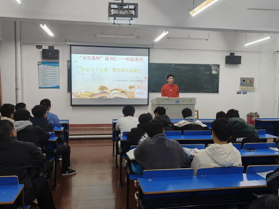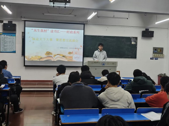 为把时事政治更好融入思政课堂,让学生了解党和国家重大方针政策,最新国内外形势、重点热点新闻等,提高全班学生的阅读理解能力,建设学习型的先进班集体,WilliamHill官方于2023年11月16日竞知楼212开展了主题为“纵论天下大势,聚思想交流盛会”的“天生我材”读书汇--时政系列主题活动。此次活动由A2321班班长黄陟凯、A2322班班长徐佳俊负责。