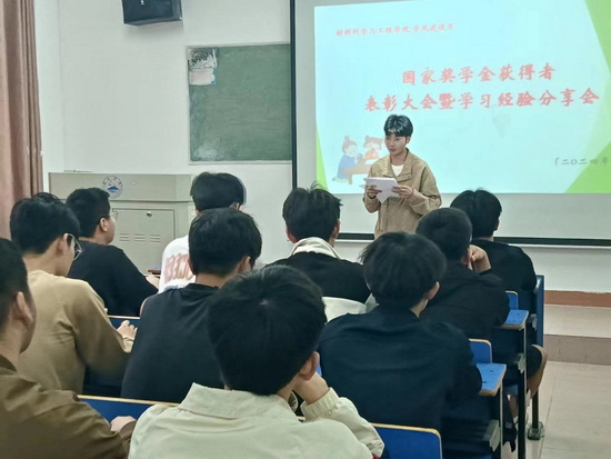 随后,欧阳辉同学讲述了自己在学术研究、课程学习、时间管理等方面的经验,并强调了勤奋努力、坚持不懈的重要性。每个学期,欧阳辉同学都会制定科学、合理的学习计划,周密地安排时间。他的综合测评成绩连续三年排名专业第一,连续三个学年获评“三好学生”称号,在读期间,获得7次校奖学金,两次国家励志奖学金,一次国家奖学金,并获得了2022-2023学年williamhill威廉希尔中文“十佳大学生”荣誉称号。同时他鼓励大家积极参加活动和竞赛,让大学生活更加丰富多彩,在未来的道路上绽放属于自己的光彩!欧阳辉同学代表williamhill威廉希尔中文参加第十二届全国大学生金相技能大赛,并荣获国家三等奖,以校一等奖的成绩参加江西省大学生职业生涯规划大赛,荣获铜奖,主持的项目在江西省高等学校大学生创新创业训练计划中荣获省级立项,以第二作者身份发表CSCD论文一篇,作为第二参与人申报的《多铁性Fe₃O₄@BiFeO₃纳米颗粒膜及制备方法和应用》发明专利已受理成功。