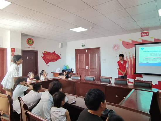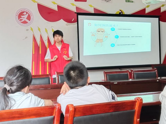 真情暖童心,让青春之光在社会实践中闪耀。为更好地助力青少年健康快乐成长,A2312班受资助学生曾宇积极投身志愿者服务,并前往乡村开展“儿童暑期防溺水安全知识”宣讲活动。活动中,他向家长及儿童宣传讲解防溺水相关知识,提醒家长要增强防溺水意识,要加强对未成年人的监督和保护,防止溺水事故的发生。