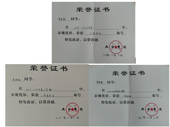 在学习的舞台上,曾梓聪凭借着顽强的毅力和不懈的努力,绽放出耀眼的光芒。他先后荣获国家励志奖学金1次,学校一等奖学金1次、二等奖学金2次及三等奖学金2次,并连续2次荣获三好学生称号。这些荣誉背后,是他持之以恒的付出。刚踏入大学,面对新环境与家庭经济困难的双重压力,他虽曾内心忐忑,但国家助学政策如一束希望之光,给予他坚定前行的动力。从此,他以勤奋为笔,在专业知识的浩瀚海洋中尽情挥洒。课堂上,他像一块海绵,全神贯注地吸收着每一个知识点;作业时,他细致入微,认真严谨地对待每一个问题、每一处细节;考试中,他胸有成竹,全力以赴地展现自己的所学所思。他深刻地认识到,贫困并非阻碍进步的枷锁,而是磨砺意志的磨刀石,是激发斗志的催化剂。他用实际行动生动地诠释着对知识的炽热渴望以及对家庭的深沉责任担当,用优异的成绩有力地证明了努力学习是减轻家庭经济负担的有效且坚实的途径。