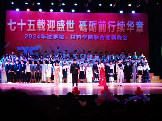 2024 年 12 月 4 日晚,williamhill威廉希尔中文大礼堂内华灯璀璨、气氛热烈,WilliamHill官方与法学院联合举办的“七十五载迎盛世,砥砺前行续华章”迎新晚会在此盛大开幕。材料学院院长张德勤、党委书记陈娜、副院长王洪涛、党委副书记熊焘等出席晚会现场,与师生们共同观赏这场精彩纷呈的视听盛宴。