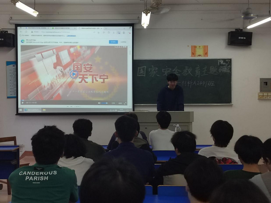 活动开场,班长播放了一段发人深省的视频,内容涵盖政治、国土、军事等多领域的国家安全事件,像非法干涉内政、国土侵占、数据窃取等。触目惊心的画面,让同学们直观意识到,国家安全并非遥不可及,而是和每个人息息相关。