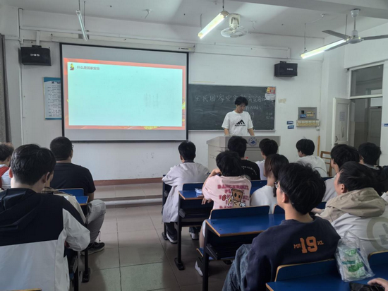 互动环节,班长组织了国家安全知识问答,问题涉及如何辨别危害国家安全的行为等多方面。同学们热情高涨、踊跃答题,答对者收获小奖品,这既是对个人知识的认可,更激发了全员学习热情。热烈讨论中,同学们剖析问题背后的国安隐患,明晰了新时代青年维护国家安全的责任担当。