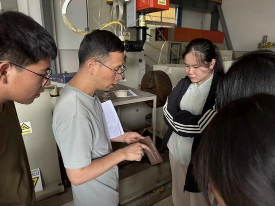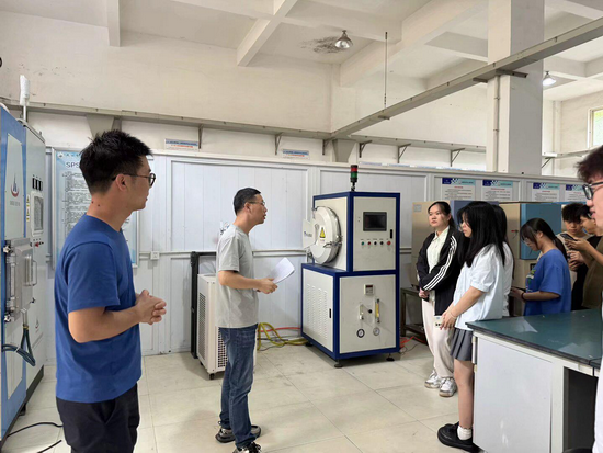 随后,在曹博士的热情引导下,师生们有序步入宽敞明亮的实验室。一踏入实验室,映入眼帘的是闪烁着科技光芒的各类先进实验设备,以及功能划分清晰的实验场地。在曹博士细致入微的讲解中,大家不仅近距离观察了超音速火焰喷涂、冷喷涂、激光熔覆成套设备、SPS烧结以及材料表面分析仪、SEM、XRD等高端测试仪器的构造与运行原理,还深入了解了这些设备在材料表面工程研究领域中的重要作用——从材料表面改性、涂层制备到性能表征等关键环节,这些设备都是不可或缺的“得力助手”。同时,师生们还通过现场演示和案例分享,系统了解了每台设备的规范操作流程与实际应用方法,在理论与实践的结合中,对材料表面工程研究有了更直观、更深入的认识。