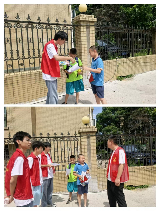 在高桥道社区,刘致远、沈学艺、包勇、卢星辰一行人与社区工作人员组成宣讲小队,深入居民家中开展普及工作。