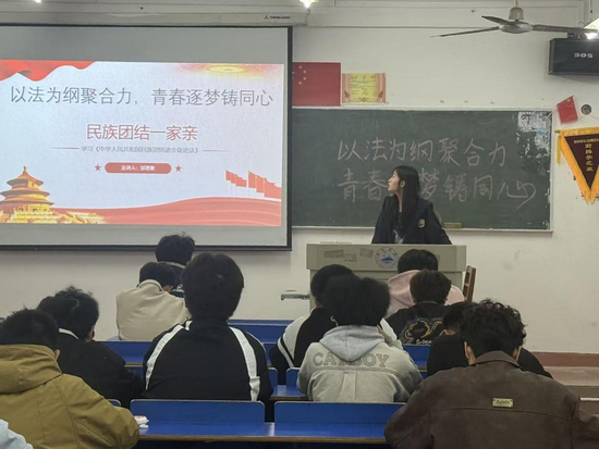 活动系统梳理中华优秀传统法治文化与新时代全面依法治国的内在联系,从“法不阿贵、绳不挠曲”的传统法治智慧,到“法治中国”建设的战略部署,结合典型法治人物与案例,深入阐释法治精神的时代内涵,引导同学们深刻理解尊法学法守法用法的重要意义。 本次团日活动紧密结合校园实际,将法治理念转化为具体实践。活动倡导同学们从遵守校规校纪、尊重他人权利、维护公平秩序等小事做起,依托模拟法庭、法律知识竞赛、反诈宣传、法治手抄报、社区普法志愿服务等形式,让法治教育可感可触、入脑入心,营造崇法向善、守法用法的良好氛围。 组织委员沈培杰在活动中表示,传承法治文化、弘扬法治精神,是培养时代新人的重要内容。学院将持续创新普法形式,用好新媒体平台,开展特色法治文化活动,不断提升普法实效。