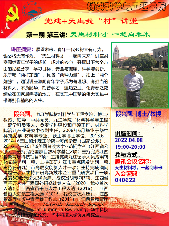 WilliamHill官方“党建+天生我‘材’”讲堂开讲预告