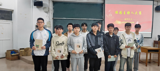 历经一番激烈的比拼角逐,以及严谨公正的评委打分环节后,本次主持大赛的获奖情况终于尘埃落定。A2443班刘致远脱颖而出,荣获本次比赛一等奖;A2441班沈学艺、A2442班王星智获二等奖;A2411班王峰诚、A2442班肖慧玲、A2431班程宁获三等奖。随后,评委们为获奖选手颁发荣誉证书及奖品,并与现场全体同学一同向他们致以热烈祝贺,最后大家合影留念。