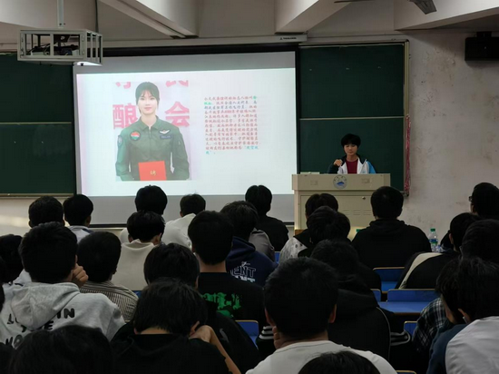 邹佳兴同学讲述了无悔青春逐梦的“突击玫瑰”徐枫灿的故事。徐枫灿凭借自身过硬的飞行技术,守护祖国蓝天,以青春之力守护家国安宁,因此被网友们亲切地称为“突空玫瑰”。她用拼搏与坚韧,诠释了千锤百炼后终迎柳暗花明的精彩,深深触动了同学们。