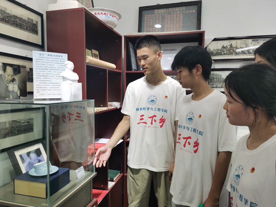 展厅内一件件陈列的革命文物,一张张真切的照片,一段段感人肺腑的革命文字,通过实践队梁艳、徐祎琳、曾宇等成员以“观”-“讲”-“演”相结合的方式,让实践队员深切感悟到在党的领导下,景德镇人民从五四运动到大革命时期、土地革命战争时期、抗日战争时期、解放战争时期景德镇三十年的革命斗争足迹。在这堂大思政课中,同学们再次感受到蕴涵在千年瓷都的红色革命精神,深刻体会一代又一代瓷都人民顽强斗争的坚毅品质。