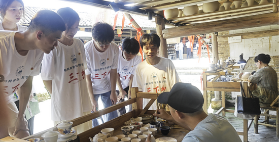 看到很多年轻人在这了进行瓷器和文艺的创作,队员黄陟凯分享道:“这样的经历,让我更加坚定了深耕学习材料科学与技术专业的决心,牢记习近平总书记的嘱托,深入研究陶瓷材料的结构、性能,以及在工程应用中的作用,扎实做好非物质文化遗产的系统性保护,把传承下来的老手艺、老文化,融入到百姓生活当中,与世界分享。”