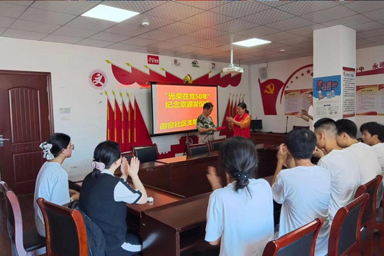 参与社区“光荣在党50年”纪念章颁发仪式暨党员老同志座谈会活动。一名党员老同志回顾了他在党的教育培养下,在党50年的成长心路历程。随后,老党员们分别就各自入党后工作生活经历忆初心、谈感受,回顾艰辛历程、颂扬党的恩情。老党员们几十年在党的领导下的光辉历程仿佛就在昨日、历历在目,同学们内心激荡、备受激励。