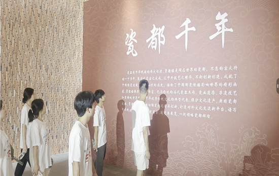 在景德镇老街区,同学们边听讲解员声情并茂地讲解瓷都的历史文化故事,同时感受瓷都的的变迁、老技艺的传承,感悟中华优秀传统文化的薪火相传、代代守护。老城博物馆内,利用全息投影、实景模型等技术将码头—民窑—弄堂—御窑渐次呈现,并利用最新技术高度还原老街原有风貌,展示了以“发掘人文历史,采撷吉光片羽,拾回小时记忆,再现古城肌理”的主题。