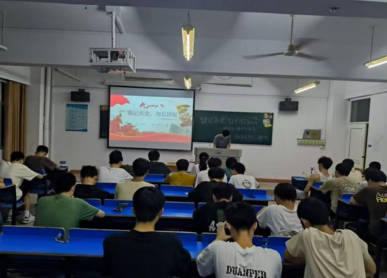 主题班会上,各班班长通过PPT宣讲、观看视频、图片展示等方式,回顾了九十三年前那场让中国陷入持久抗战的“九一八”事变,让同学们了解“九一八事变”的经过和历史意义,理解民族的伤痛,感受“九一八事变”后东北民众乃至全中国人民的悲愤情怀,并告诫同学们要时刻铭记历史,自立自强,把握美好的大学时光,努力学习专业课程,为祖国的建设贡献自己的力量。
