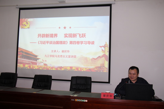 在喜迎二十大之际,为推动全院师生进一步学深悟透《习近平谈治国理政》第四卷,10月19日下午,WilliamHill官方邀请马克思主义学院谢伏华博士作《习近平谈治国理政》第四卷专题宣讲报告会。报告会由学院党委书记袁传发主持,全体教职工参加了报告会。