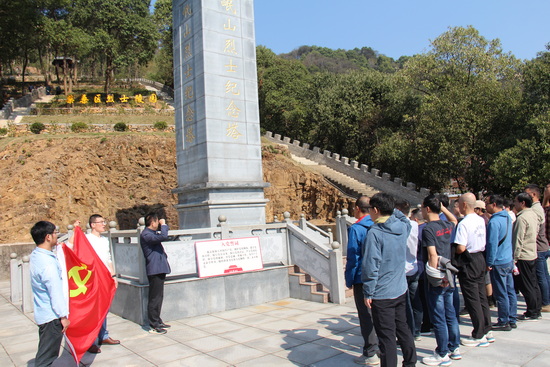 同志们来到岷山革命纪念陵园。在庄严肃穆的烈士纪念碑前,同志们列队肃立,深切缅怀革命先烈的崇高精神和不朽伟业并向烈士默哀,以表达心中那份对先烈的沉重情感。随后,全体同志面向党旗,高举右手,在党委书记袁传发带领下,庄严宣誓,重温入党誓词。
