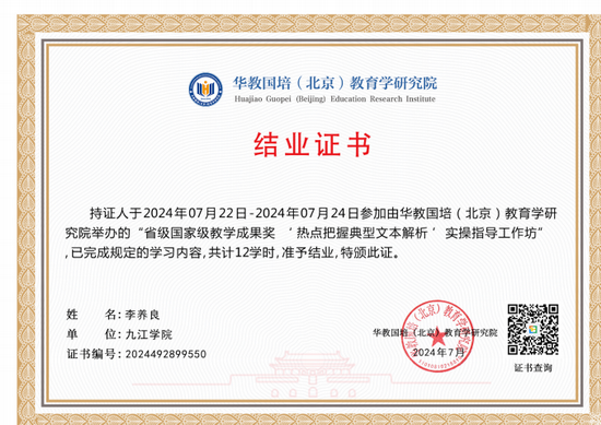 7月22-24日,由华教国培(北京)教育学研究院主办、西安创越联智胜会展服务有限公司承办的“省级国家级教学成果奖热点把握典型文本解析实操指导工作坊”在西安举办,我院教师李养良教授及来自全国30余所高校的50多名教师参加了此次教学成果奖培训会。