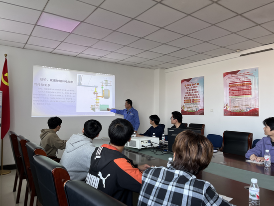 在讲课过程中,郭迪明高工以《机械设计基础》课程知识点“齿轮传动”、“齿轮系”设计为基础,采用了大量的前期课程知识,比如机械制图、CAD软件设计等,同时结合该减速器的材料,告诉同学们如何选择和热处理方式等。