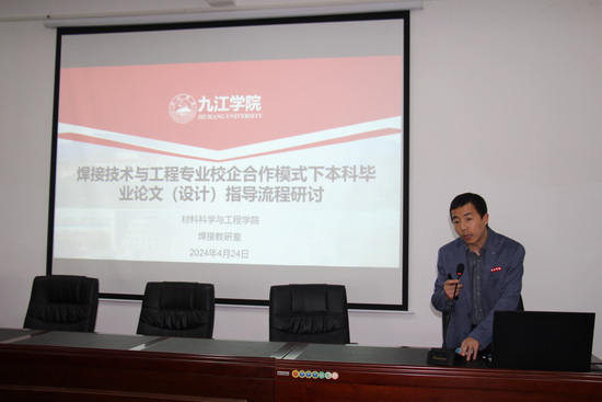 2024年4月24日,WilliamHill官方焊接技术与工程专业开展了校企合作模式下本科毕业论文(设计)指导流程研讨活动。此次活动旨在探讨并优化校企合作模式下的本科毕业论文(设计)指导流程,以进一步提升学生的实践能力和创新能力。本次活动主讲人为焊接工程教研室主任张义福博士,WilliamHill官方全体教师参加了此次教学活动,会议由材料学院副院长李养良主持。