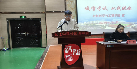 学生代表沈学艺庄重宣读诚信考试倡议书。他呼吁全体同学积极筹备考试,科学合理规划时间,以深厚扎实的知识储备与沉稳平和的良好心态勇敢迎接考试挑战,坚定不移地践行诚信考试准则。